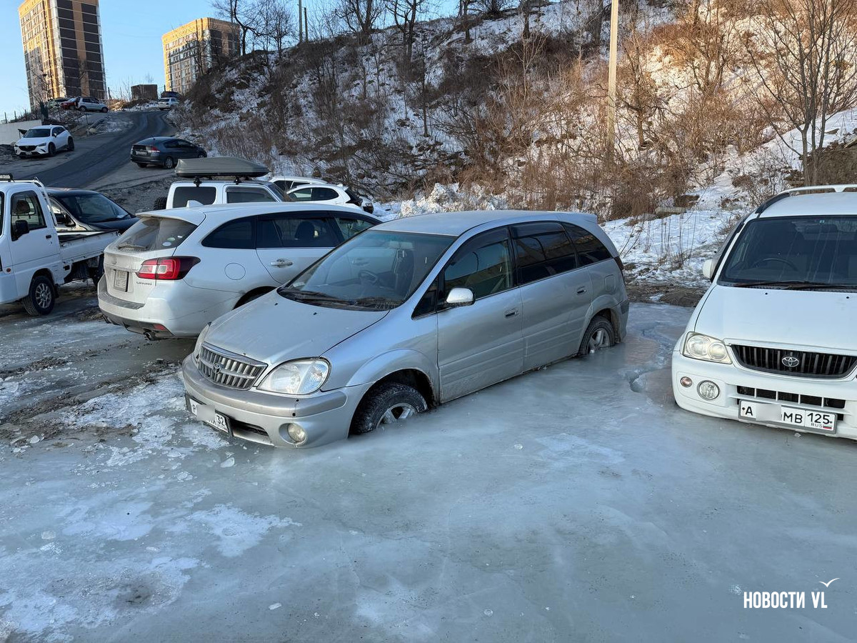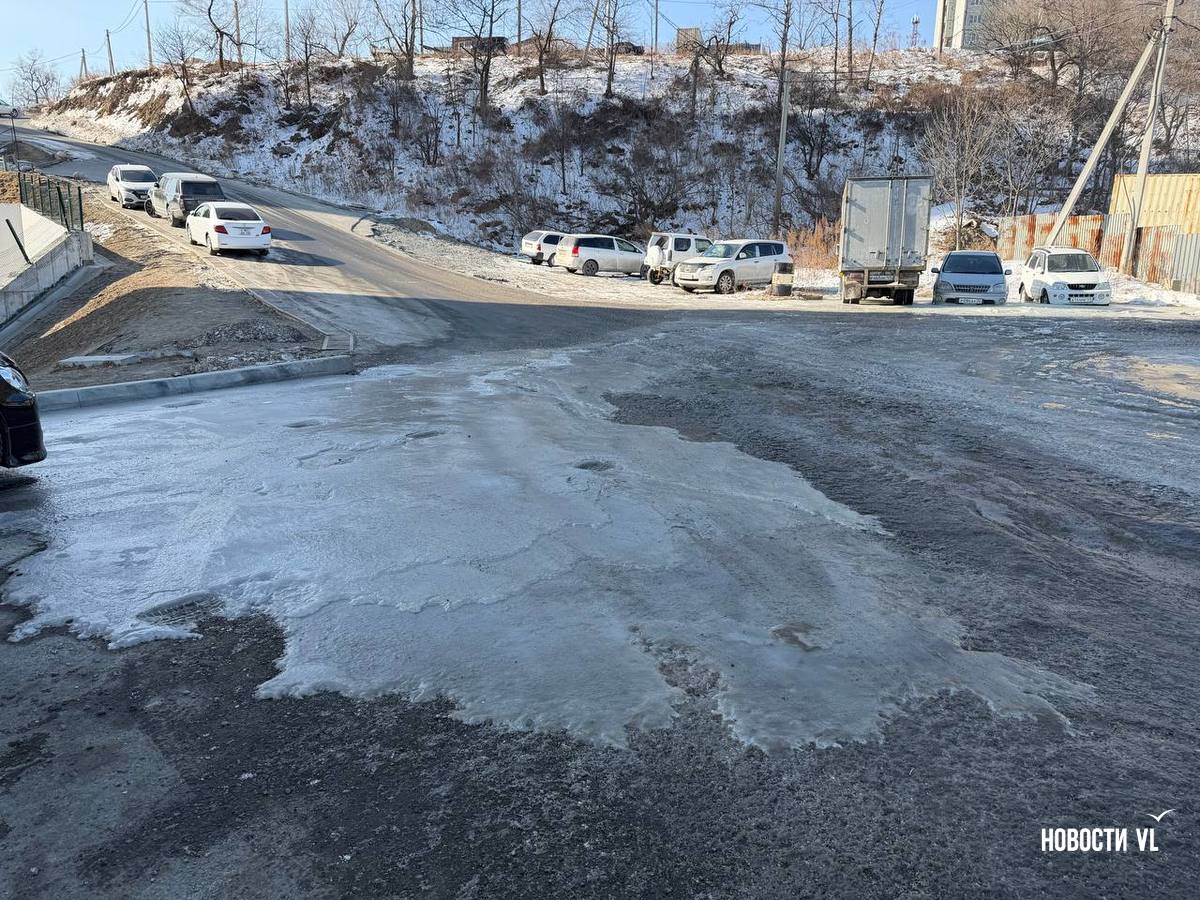 В районе Нейбута, 2а с дороги к домам уже несколько дней стекает ручей неизвестного происхождения. Припаркованные внизу машины угодили в настоящий ледяной капкан. Местные жители рассказывают, что подтекало здесь и раньше, в основном во время дождей, но после ремонта дороги река стала полноводной и теперь уходит не в коллектор, а мимо – прямо на дорогу. Во ВПЭС, ДГК и Примводоканале от ручья открестились.