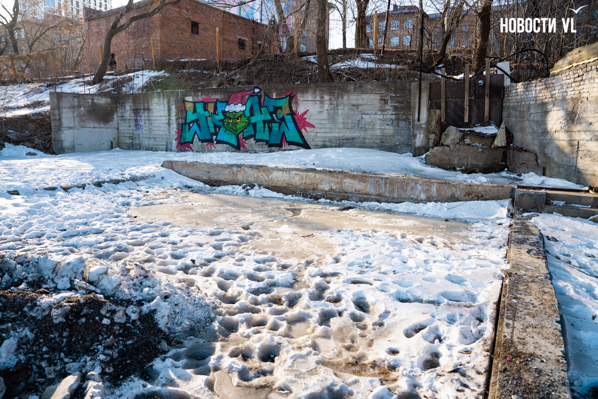 В пресс-службе СГТ уточнили, что демонтаж магазинов городская служба начала 17 декабря, а закончила (включая вывоз строительного мусора) к 29 декабря. Сейчас здесь остались большое пустое пространство и бетонный фундамент бывших магазинов, он в снегу и льду. Мусора здесь уже нет. С дороги стало видно высокую, около 2,5-3 метров в высоту, бетонную подпорную стену, её уже успели изрисовать граффити.