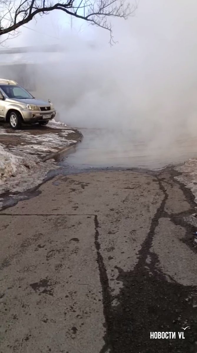 Во вторник, 3 февраля, по двору вновь разлилось большое озеро кипятка, от которого стеной поднимается пар. Вода уже успела залить дорогу и тротуары. И есть большой риск, что вскоре она замерзнёт и превратит это место в большой каток – ведь ночью температуры сейчас устойчиво отрицательные, а на днях и вовсе ожидается похолодание.