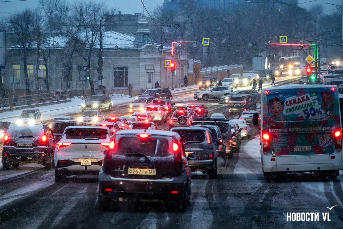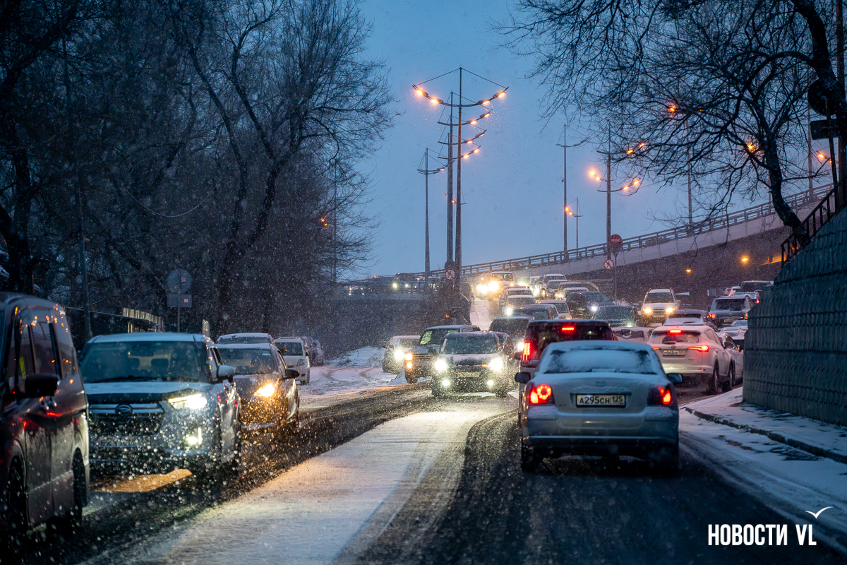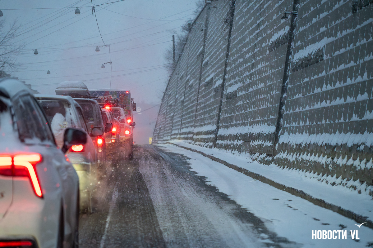 Утром в четверг, 5 февраля, как и обещали синоптики, во Владивостоке начался снегопад. На дорогах обстановка, соответствующая погоде: в городе 6-балльные пробки, заторы образуются перед скользкими подъёмами и спусками. Во избежание возможных ДТП специалисты закрыли проезд по самой крутой улице города – Капитана Шефнера. Объездную пока перекрывать не планируют.