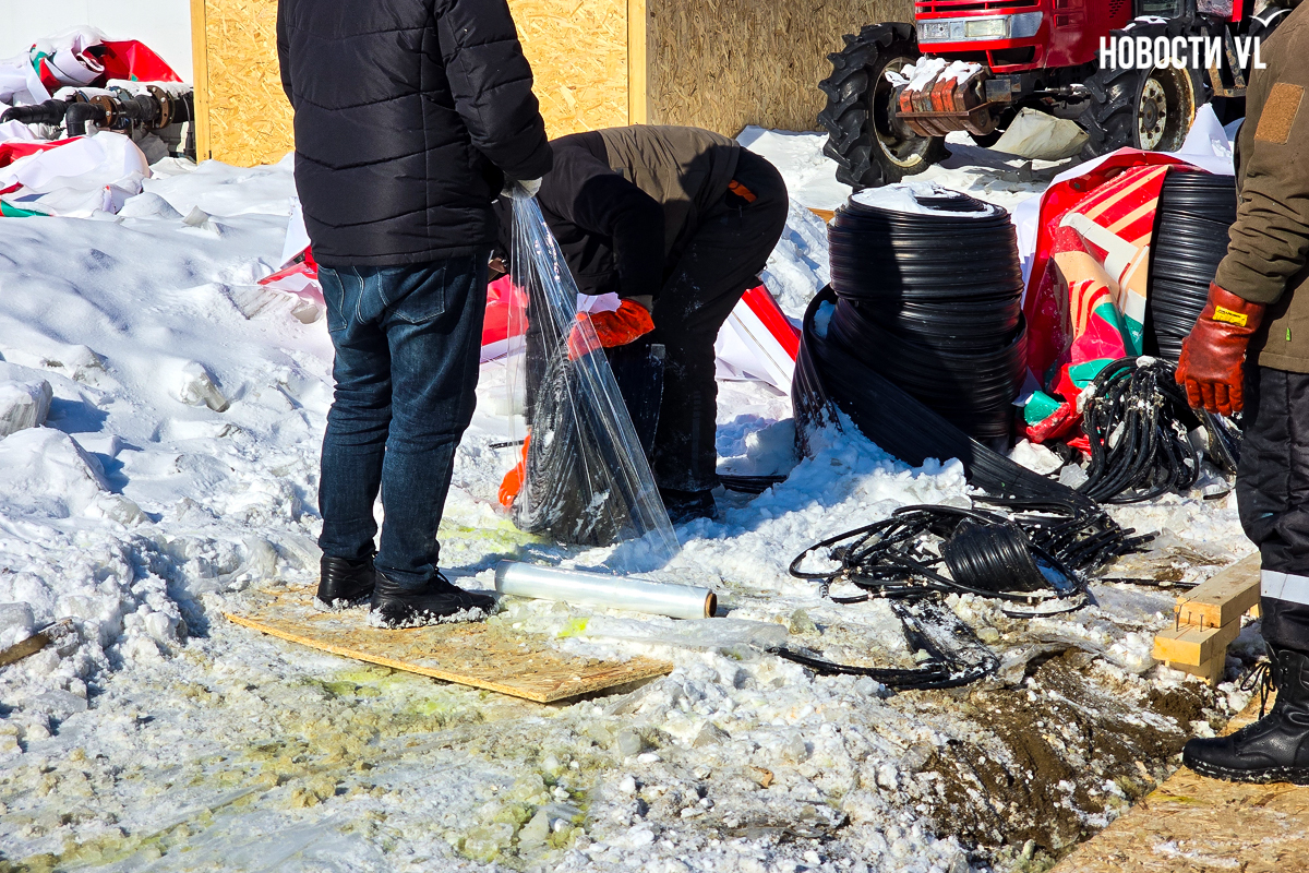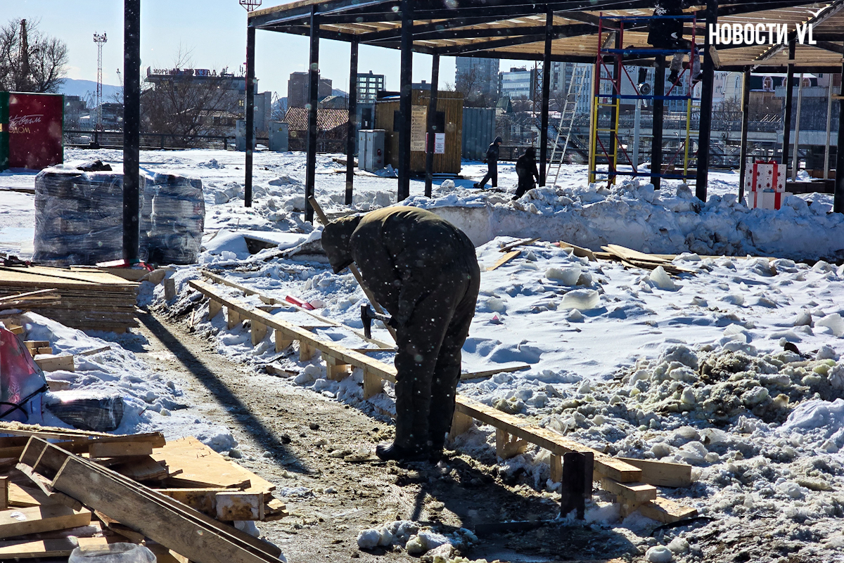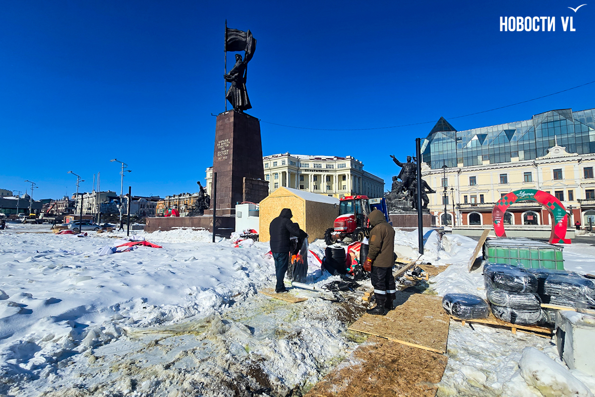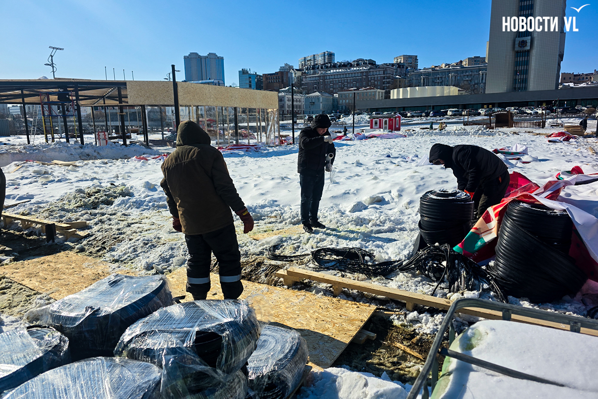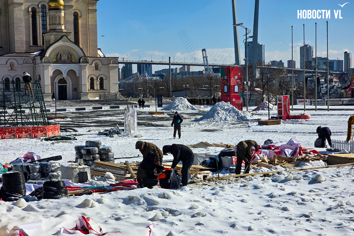 Во Владивостоке во время разборки катка на центральной площади пролился антифриз. Его использовали в холодильном оборудовании, которое поддерживало температуру льда. Фонтан, который находится рядом, не пострадал. А весь зелёный снег соберут и вывезут.