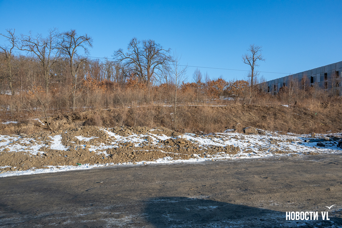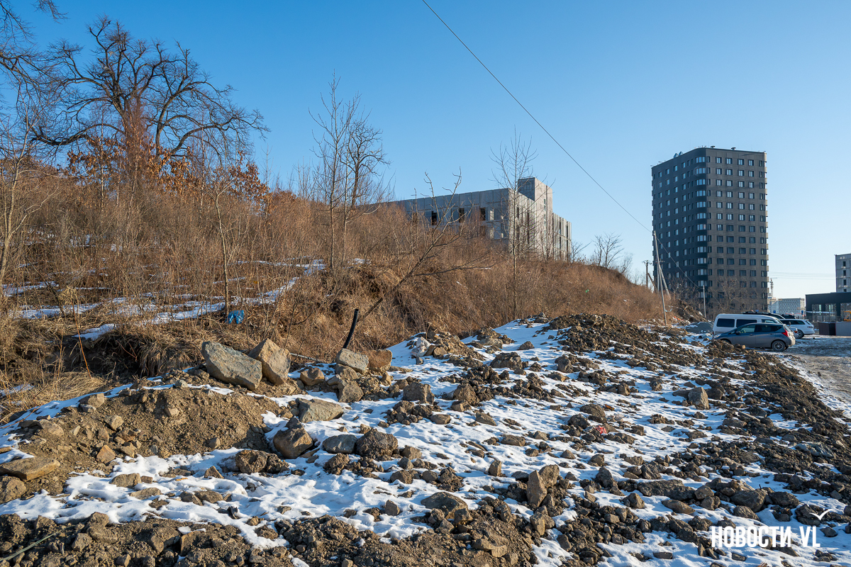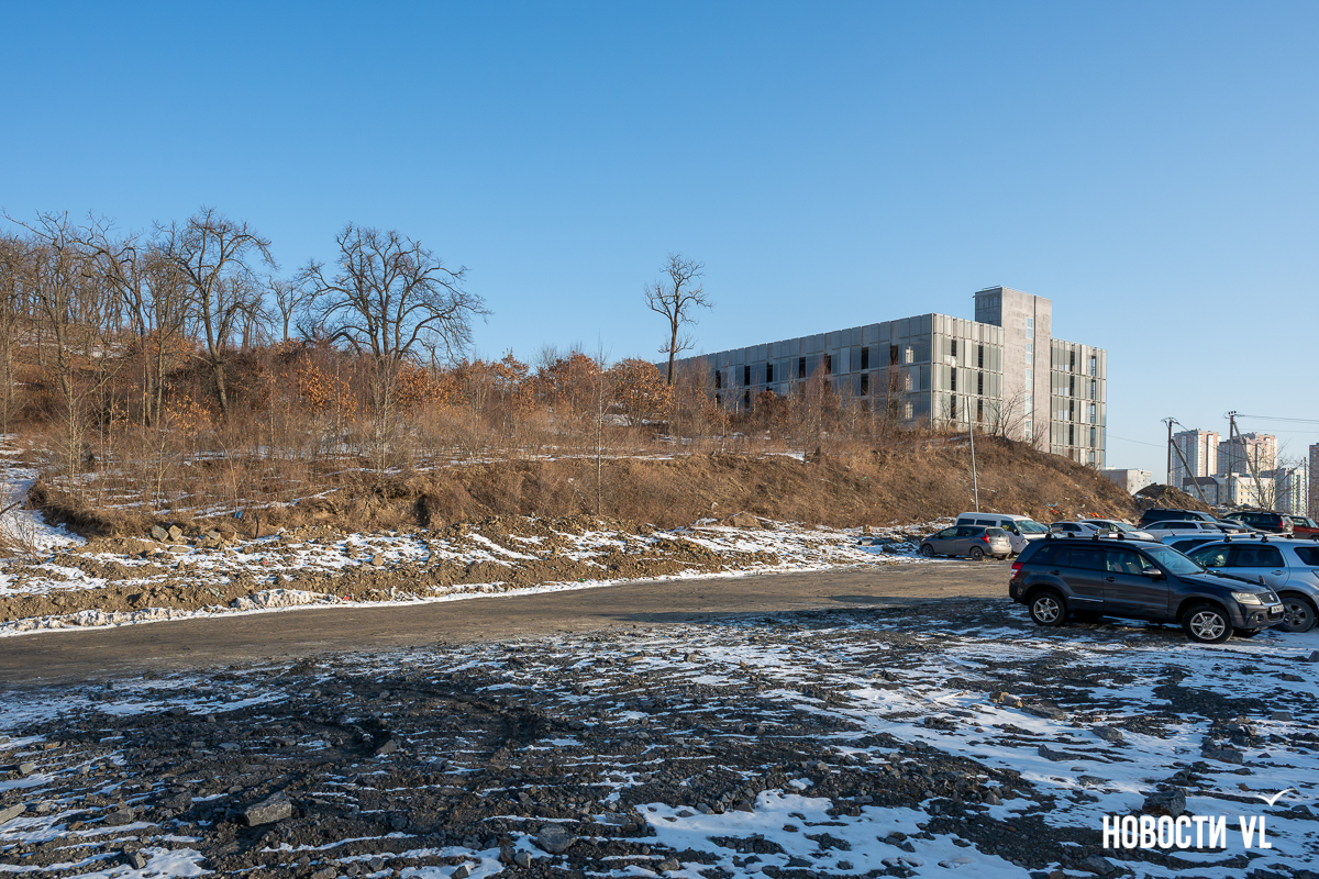 Было известно и точное место строительства, оно не менялось. Земля находилась в ведении ДОМ.РФ, но в октябре 2024-го краевое министерство имущественных и земельных отношений региона опубликовало новость: два смежных земельных участка общей площадью 8245 кв. м перешли в собственность Приморского края. Правда, чиновники, похоже, неверно перевели квадратные метры в гектары, и у них получилось более 8 га. На самом деле, территория тут в 10 раз меньше, но и 0,8 га хватало для строительства.