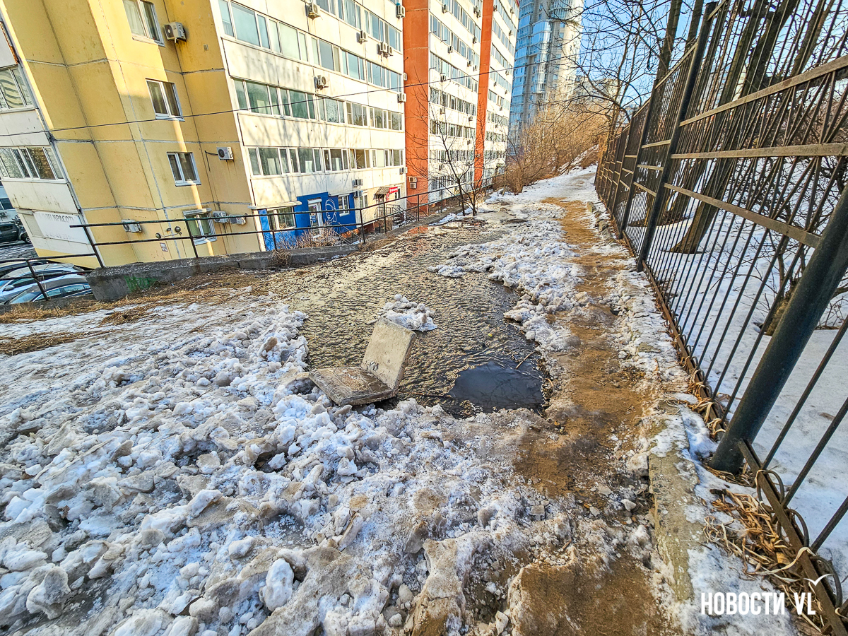 В пресс-службе ВПЭС и ДГК уточнили, что авария произошла не на их сетях. В Примводоканале сообщили, что аварийная бригада предприятия выехала на место – специалисты проведут обследование течи в этом районе.