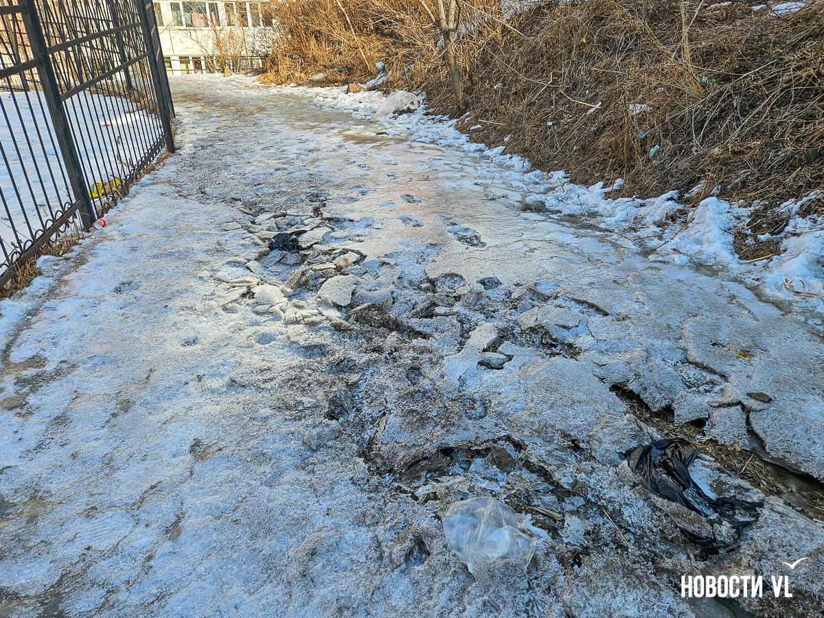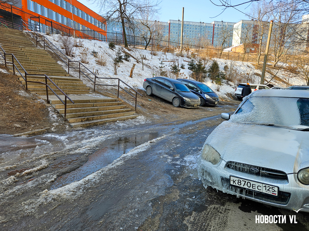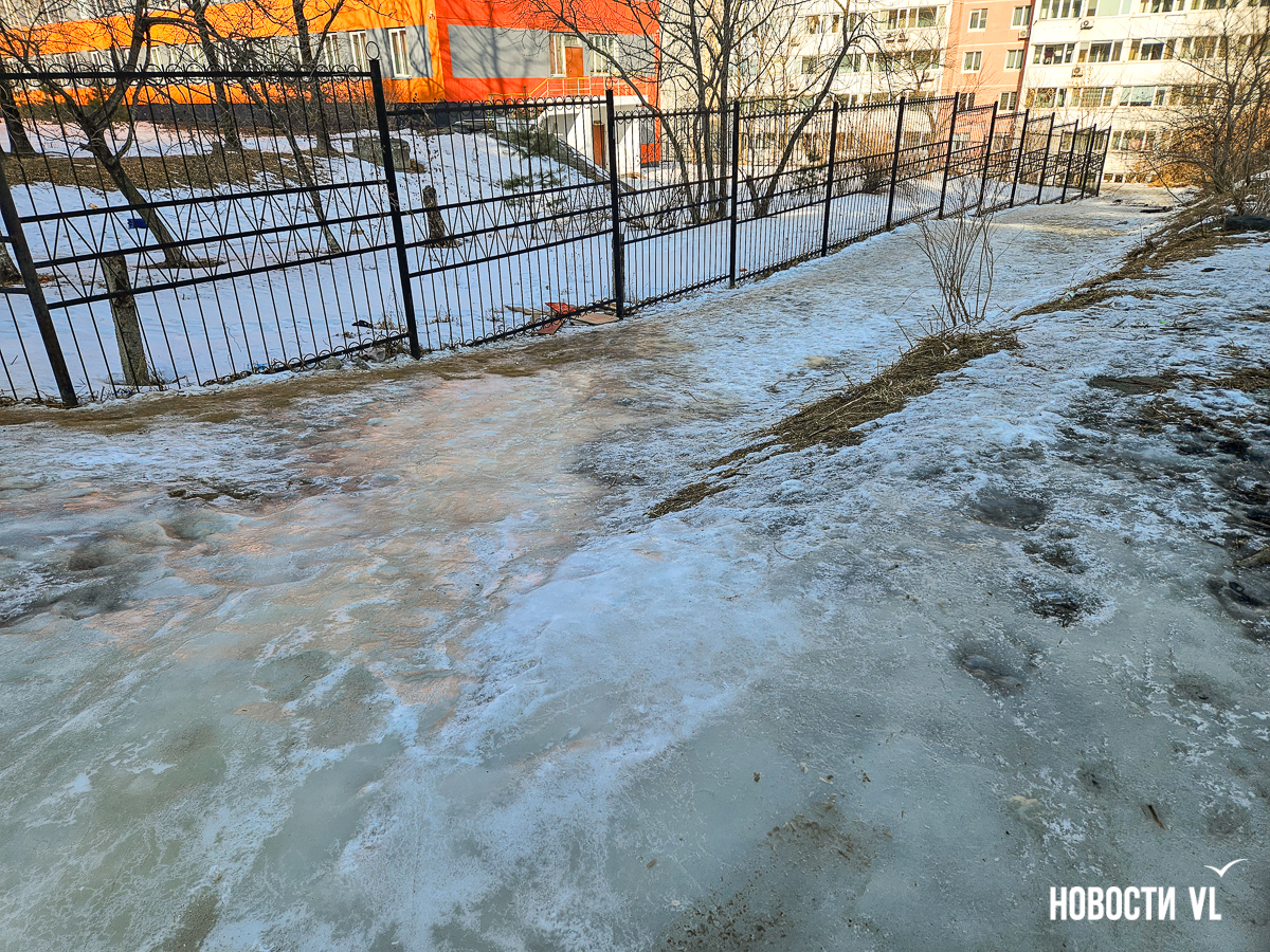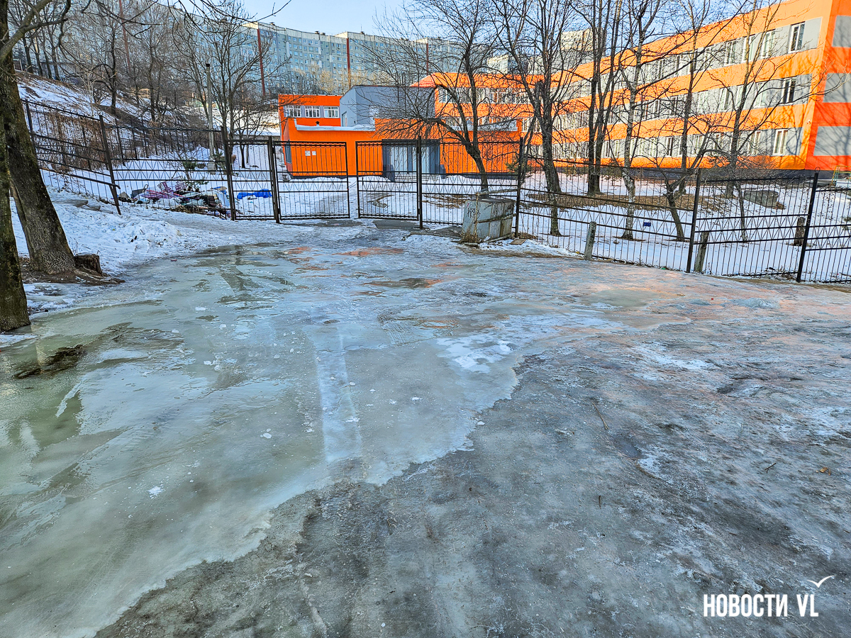 Жители улицы Шилкинской во Владивостоке жалуются на потоп на дороге около прохода к школе № 73 (Шилкинская, 19), здесь образовался толстый метровый слой льда. Это востребованное у пешеходов место – вдоль забора образовательного учреждения ходят школьники и жители района после того, как был закрыт прямой путь через школу. В пресс-службе Примводоканала уточнили, что аварийная бригада выехала на место порыва.