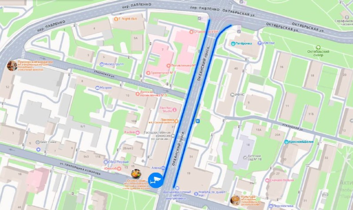 Свои планы озвучил Центр организации дорожного движения (ЦОДД). Согласно им, камеры появятся по обеим сторонам проезжей части на Океанском проспекте от дома № 19 на улице Прапорщика Комарова до перекрёстка с переулком Павленко и улицей Октябрьской.