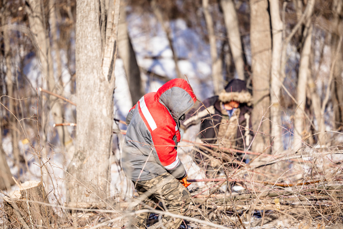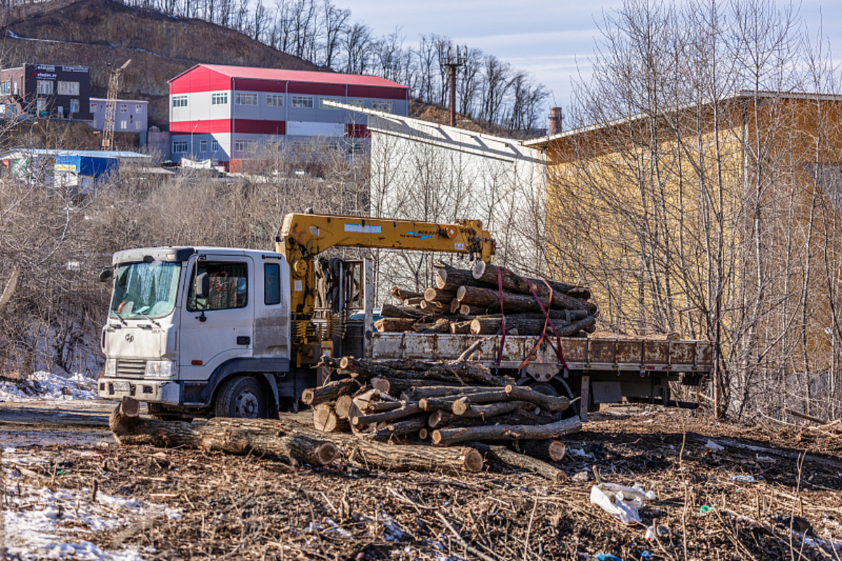 Зелёные насаждения, попавшие в границы реконструкции, рубят на участке улицы Анны Щетининой. По новому проекту здесь появится дополнительная полоса движения при выезде на Бородинскую.