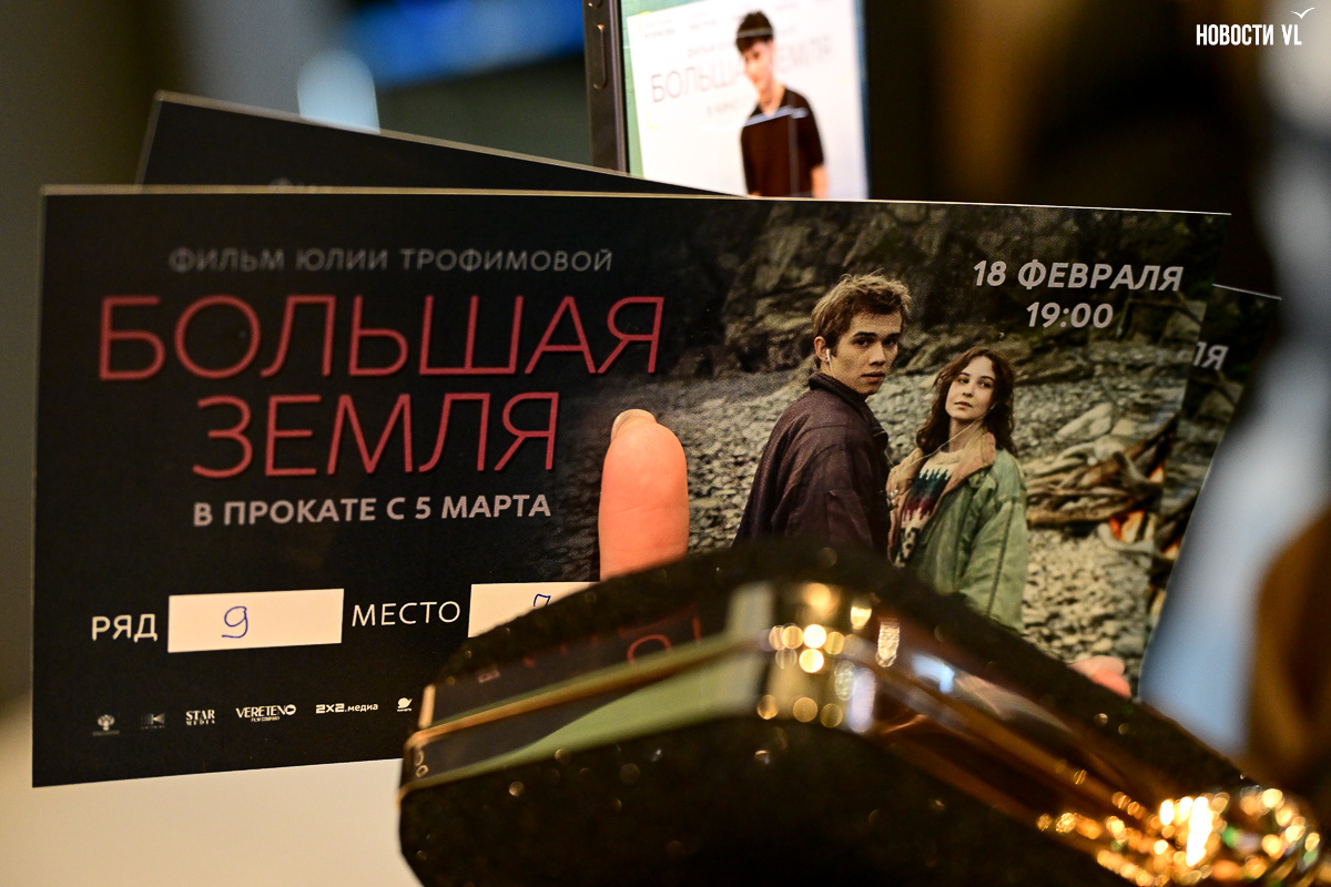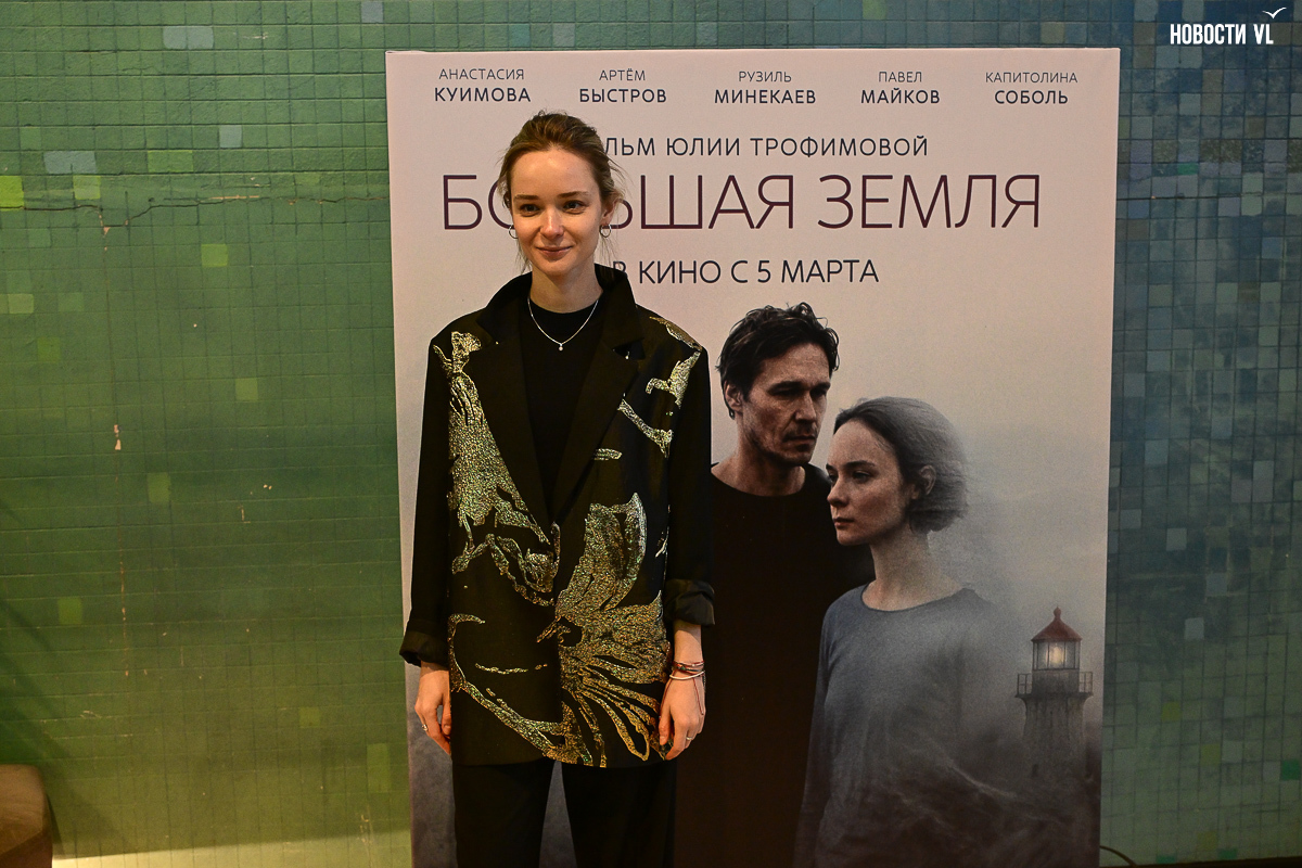 В среду, 18 февраля, во Владивостоке в кинотеатре «Океан» состоялся премьерный показ фильма «Большая земля». Он рассказывает о женщине, вернувшейся на маяк детства, а одним из главных героев картины стали приморская природа и пейзажи полуострова Брюса. Представить картину зрителям лично приехали режиссёр Юлия Трофимова и исполнительница одной из главных ролей Анастасия Куимова – перед началом сеанса они встретились с гостями и ответили на первые вопросы. После просмотра разговор продолжился уже в формате открытого диалога со зрительным залом.
