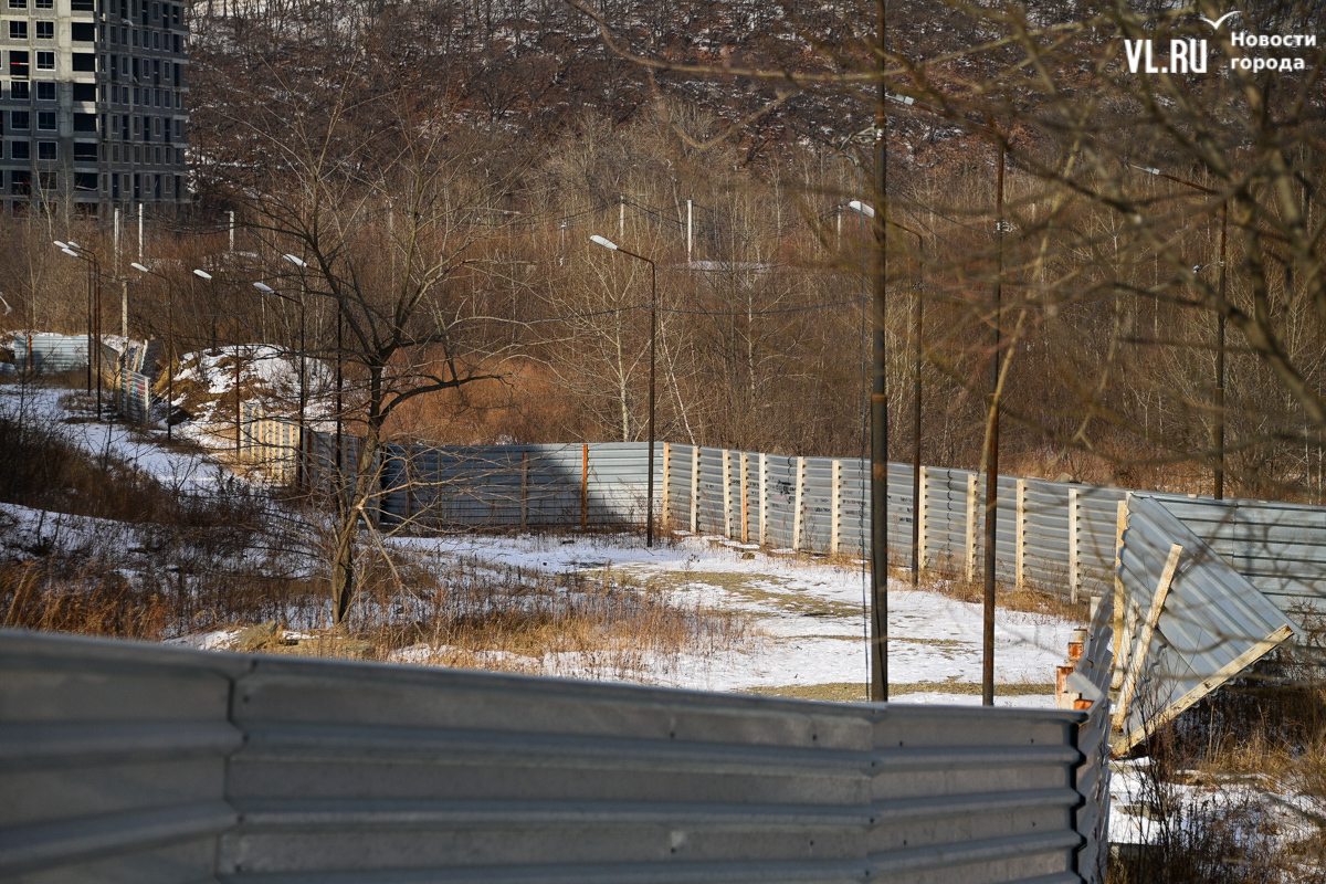 Для образовательного комплекса отрежут немного от участка 25:28:040014:15307, и это самая любопытная часть проекта. Некогда этот участок был единым с соседним, 25:28:040014:15306, на котором сиротливо ждёт достройки физкультурно-оздоровительный комплекс (он всё ещё обозначен на плане).