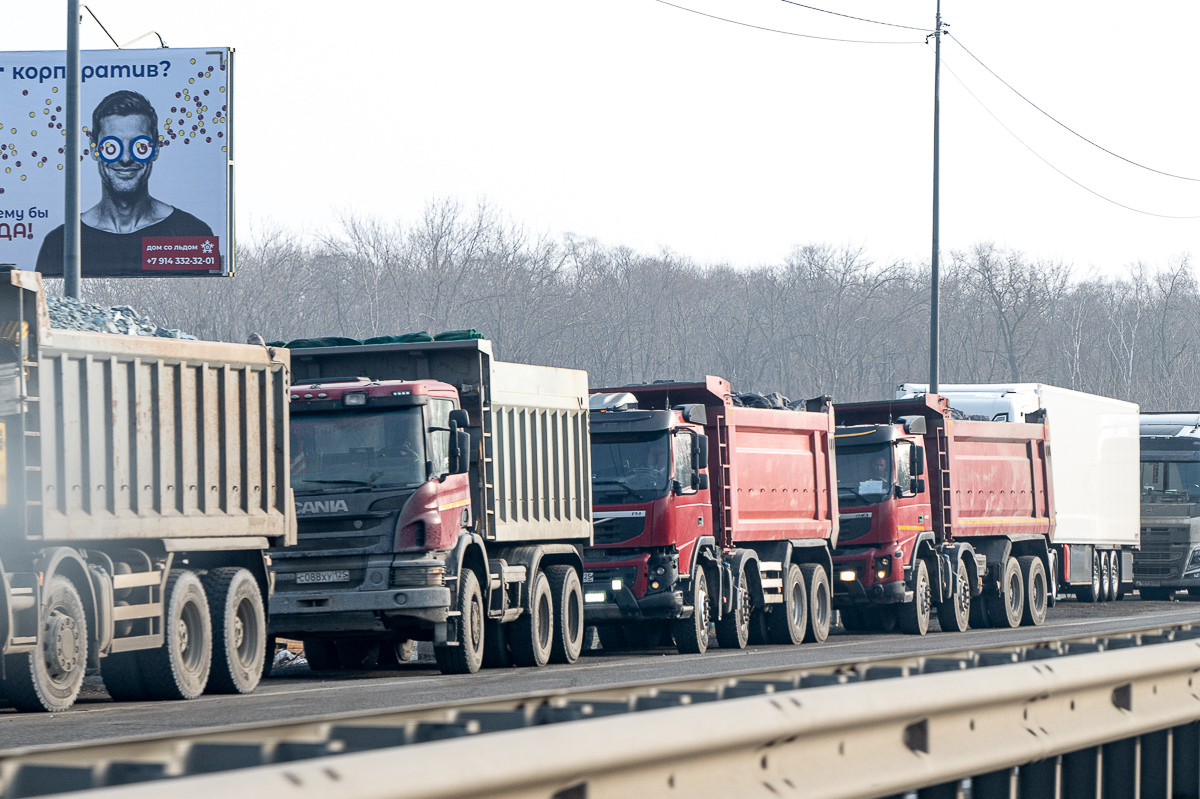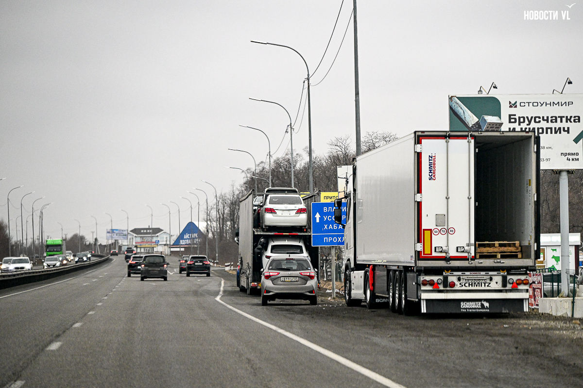 В Приморье работают все восемь пунктов весогабаритного контроля, и чтобы не платить за перевес и негабарит, водители большегрузов объезжают рамки через посёлки или скрывают госномера. Штрафы, если попадёшься, очень большие – от 300 до 600 тысяч рублей. При этом перевозчики кивают на длинномеры из Китая, которые тоже едут с перегрузом, но наказать их за это гораздо сложнее.