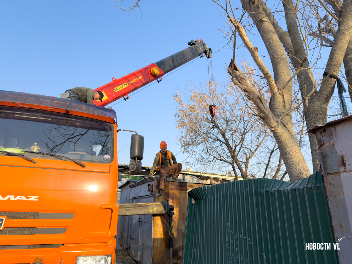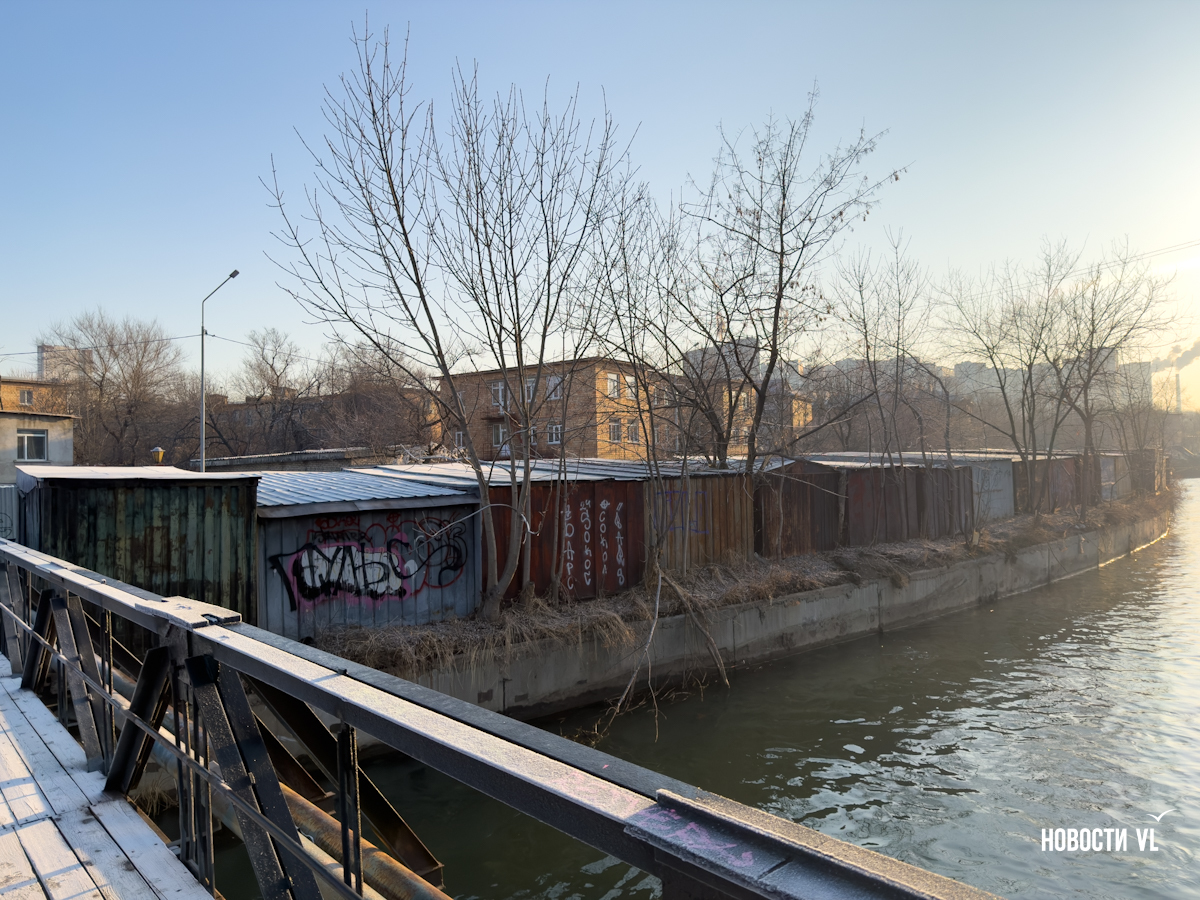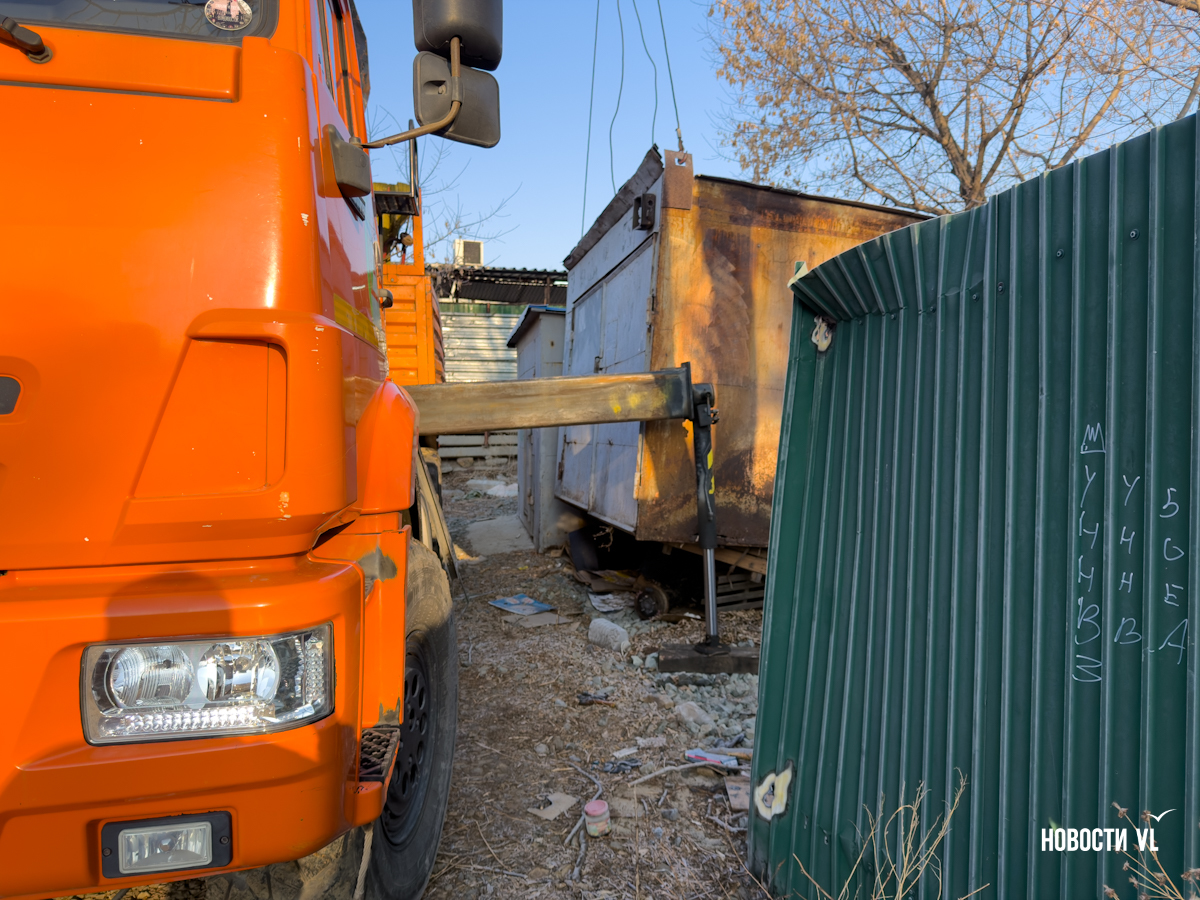 Вслед за расчисткой русла речки Объяснения во Владивостоке началось, похоже, и освобождение её берегов. Полторы сотни гаражей вдоль Спортивного рынка и реки признали незаконными ещё в феврале этого года. Владельцам давали время самостоятельно их вывезти, но никто, кажется, этого не сделал. В итоге сюда приехала техника СГТ, которая «выдёргивает» по одному гаражу.