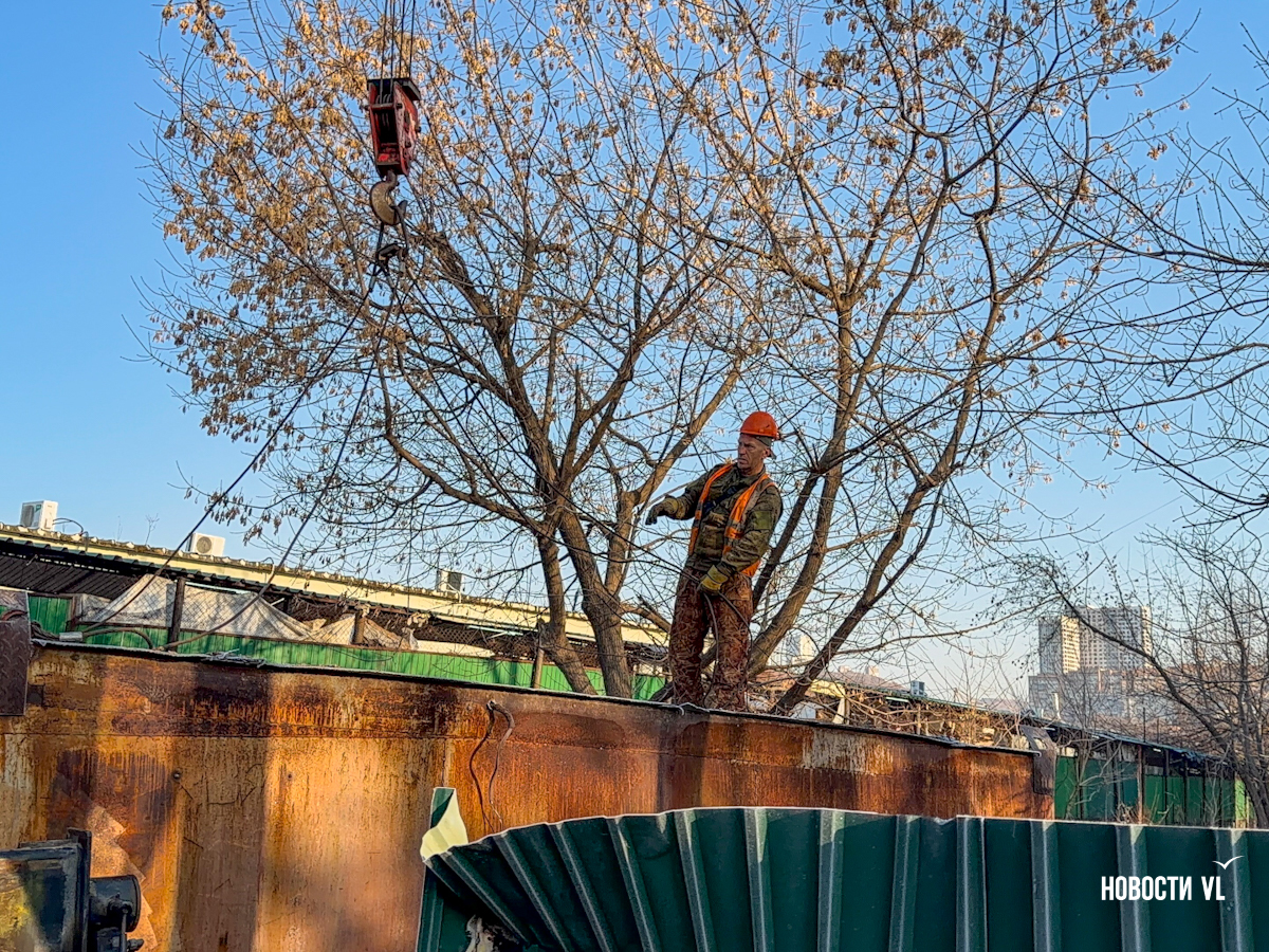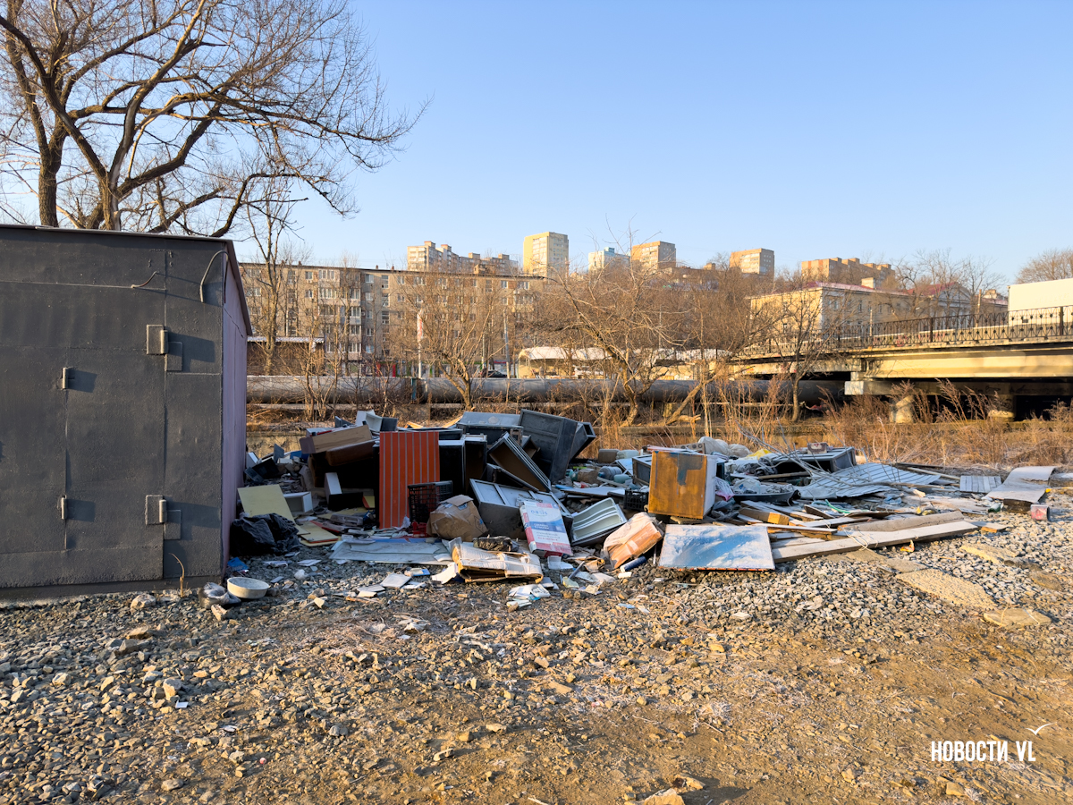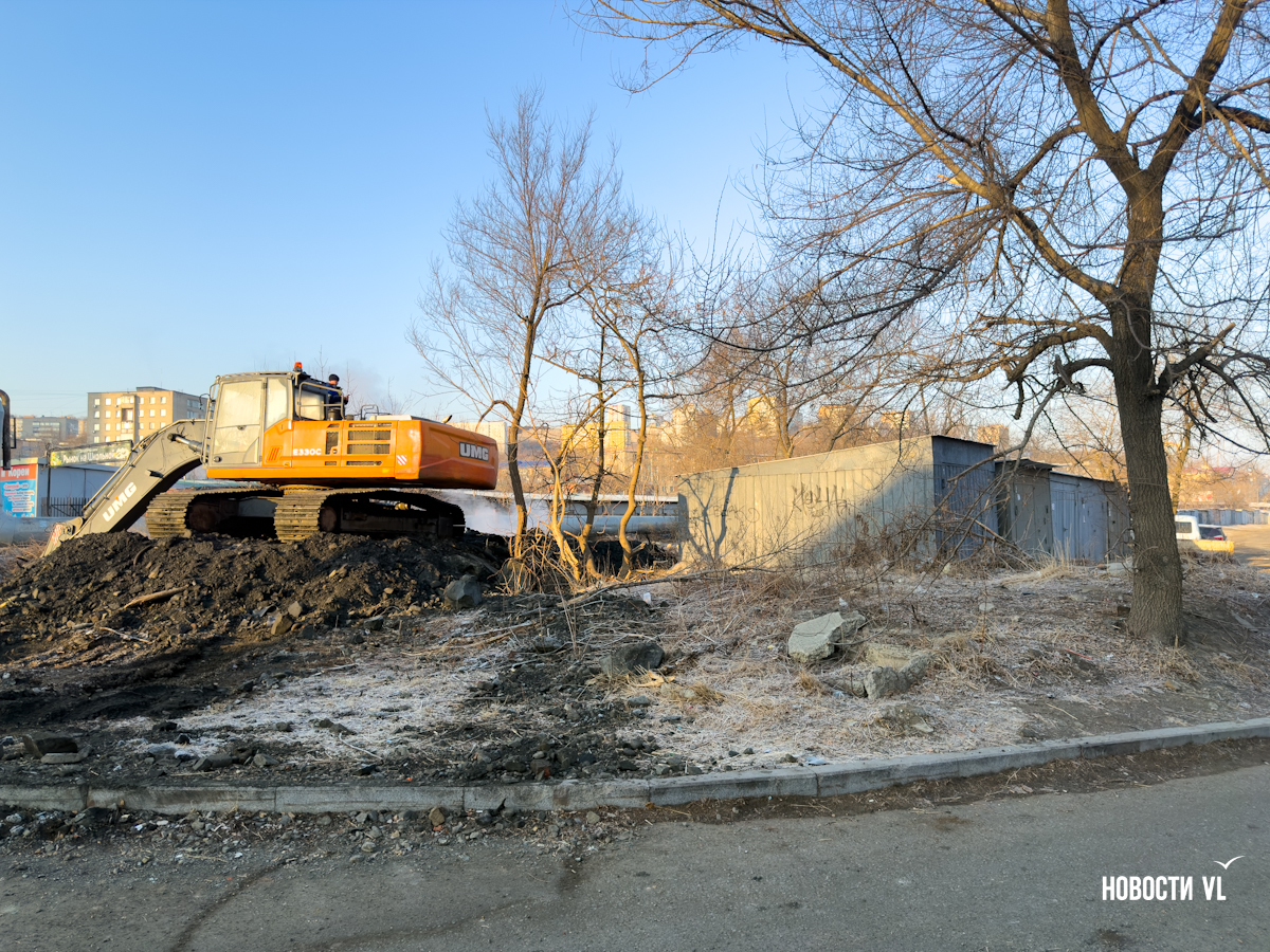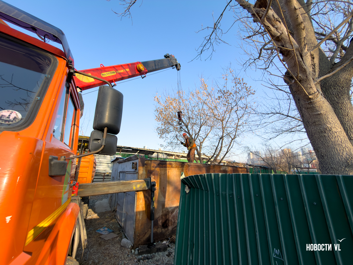 Вслед за расчисткой русла речки Объяснения во Владивостоке началось, похоже, и освобождение её берегов. Полторы сотни гаражей вдоль Спортивного рынка и реки признали незаконными ещё в феврале этого года. Владельцам давали время самостоятельно их вывезти, но никто, кажется, этого не сделал. В итоге сюда приехала техника СГТ, которая «выдёргивает» по одному гаражу.