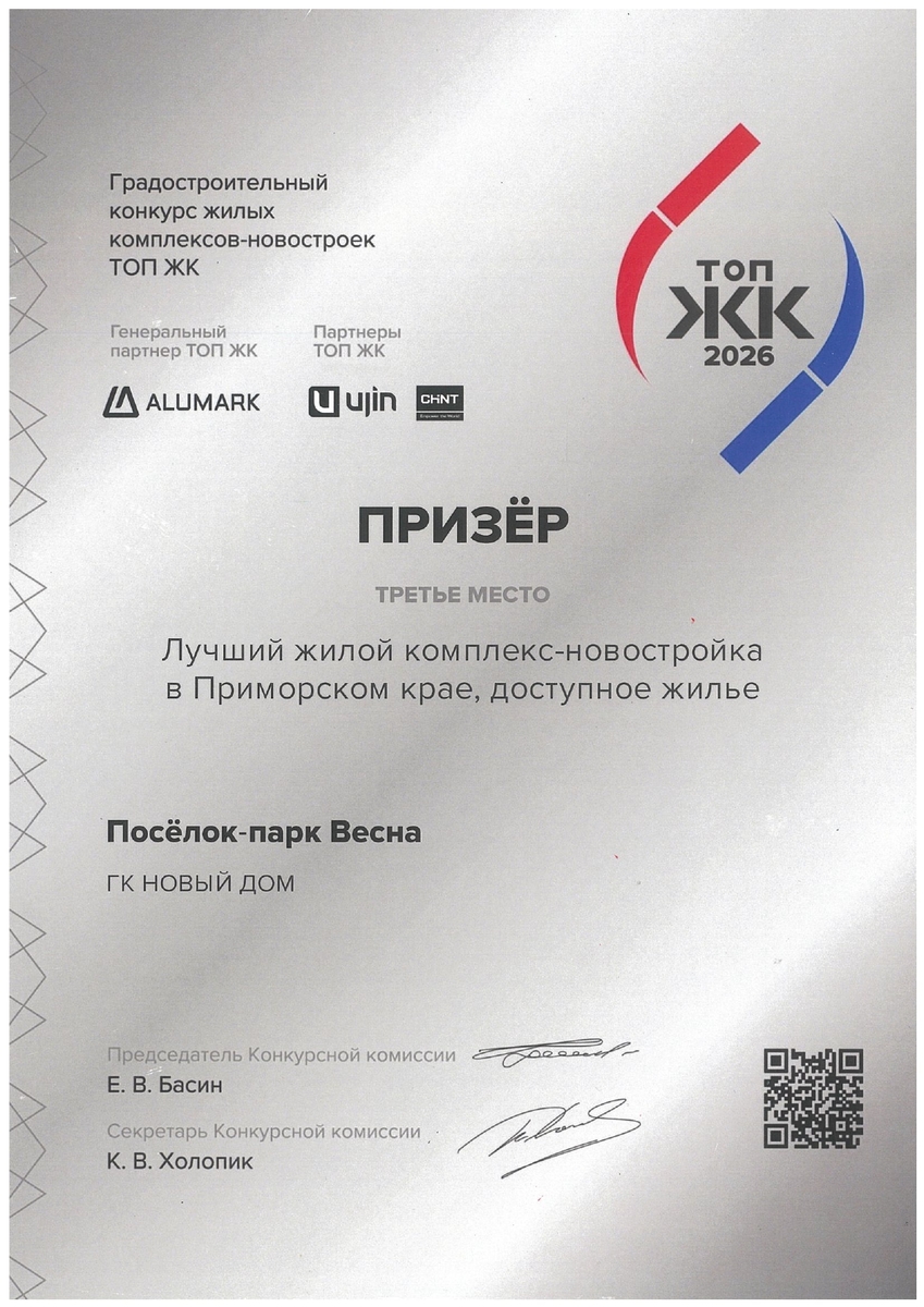 Группа компаний «Новый Дом» приглашает жителей Владивостока лично познакомиться с жилым комплексом «Парк Весна», который в этом году получил престижную награду, войдя в тройку лучших жилых комплексов-новостроек Приморья.