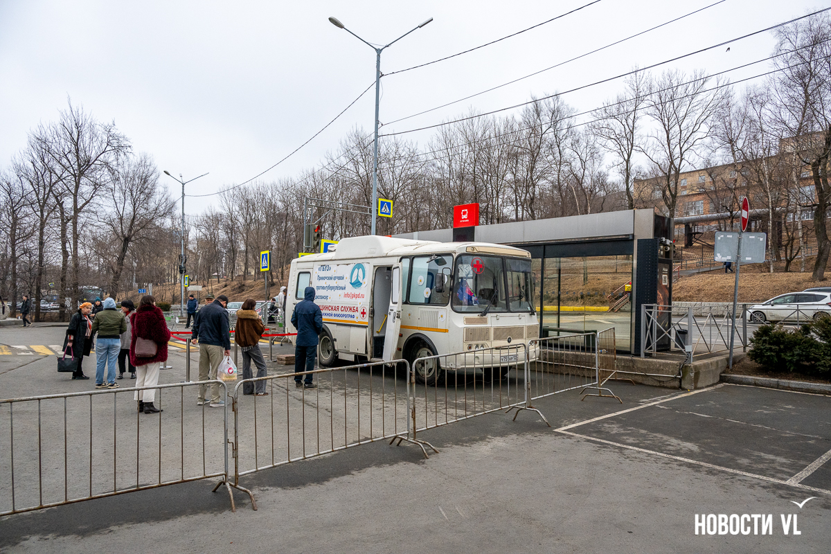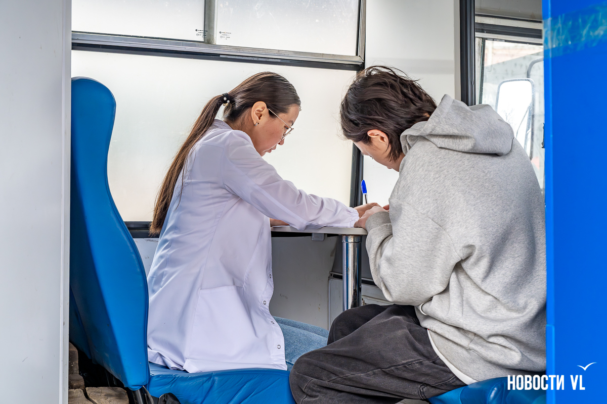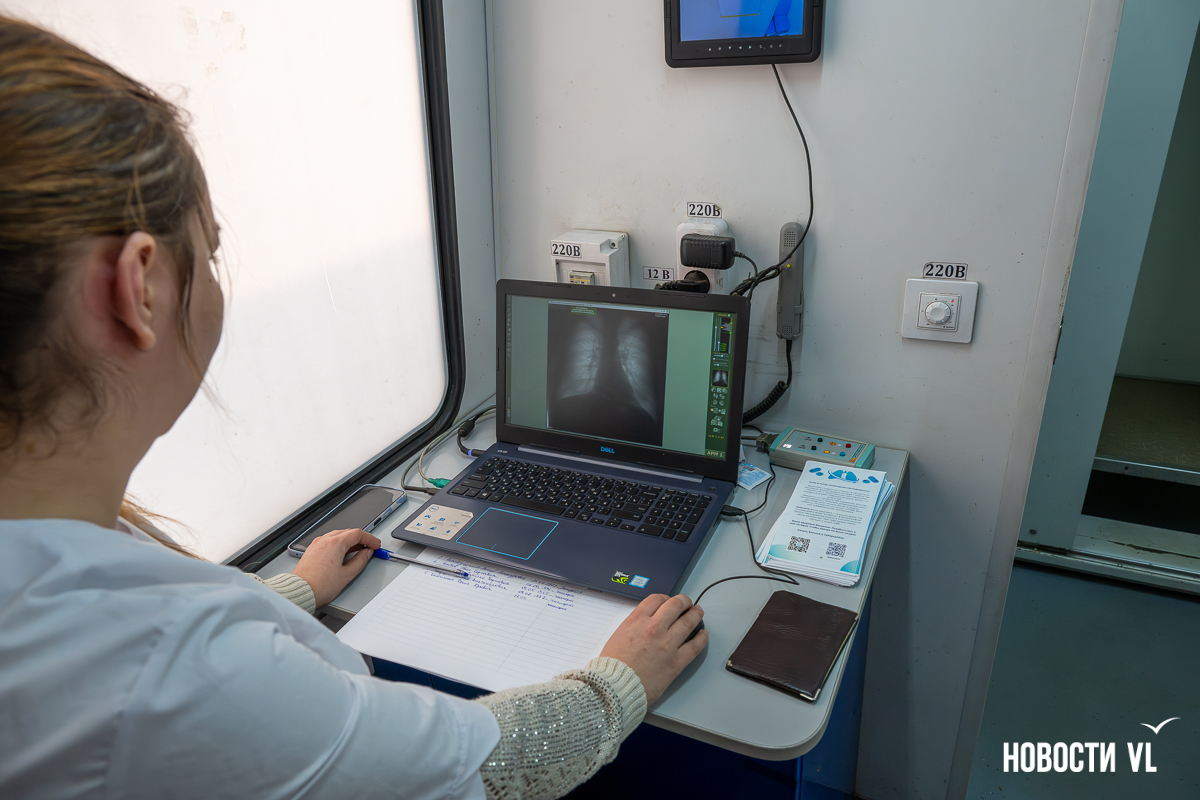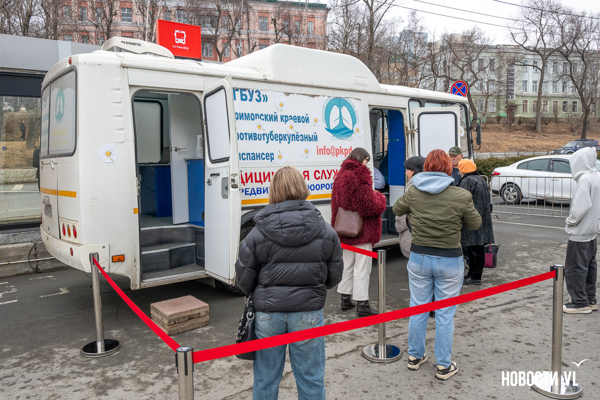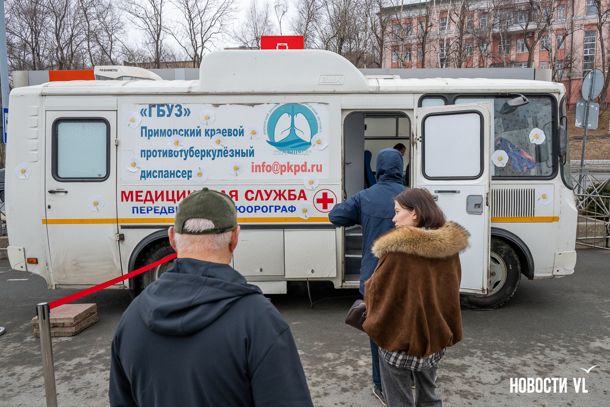 В пятницу, 27 марта, во Владивостоке прошёл первый день акции «Дыши свободно». На улице, рядом с остановкой «Калина Молл» поставили «ПАЗик» с флюорографом внутри. Обследование можно пройти бесплатно, отстояв небольшую очередь. Результаты показывают сразу, но справки будут готовы только через несколько дней. Их можно получить на электронную почту или Госуслуги.